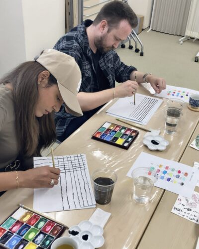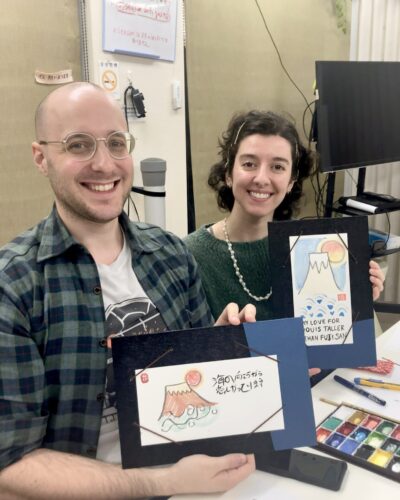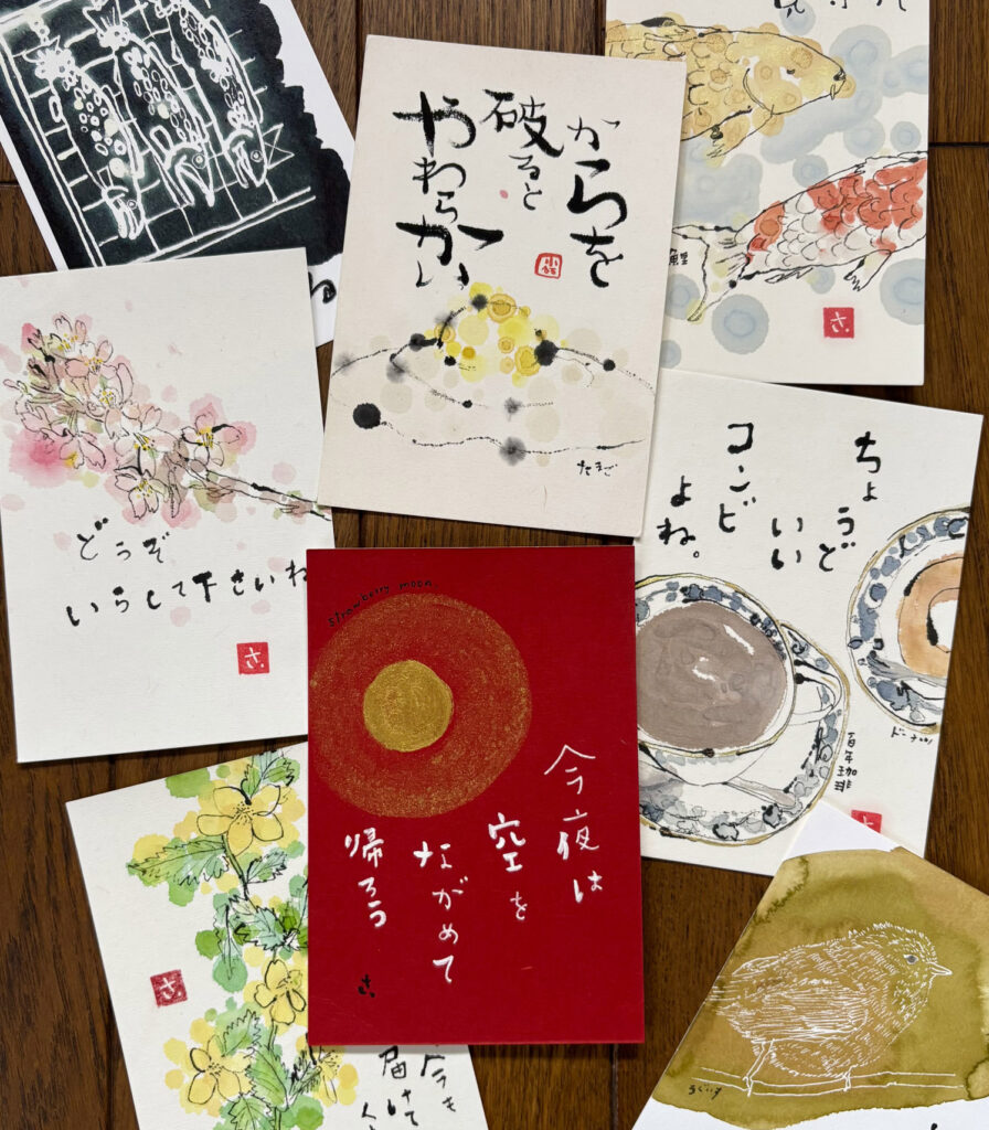 In this hands-on workshop, you’ll create your own postcard artwork using Japanese sumi ink(墨),watercolors(顔彩), and washi paper. No painting experience is needed! The charm of Etegami lies not in perfect technique, but in its warmth, sincerity, and personal touch.
